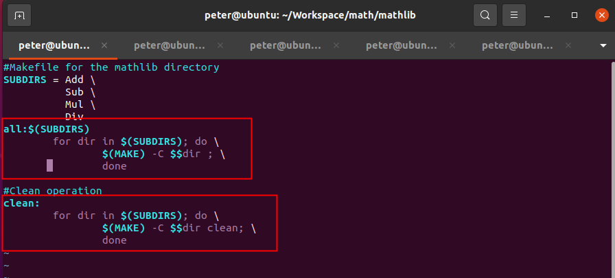 1. 在“math”目錄下創建main.c、Makefile及mathlib子目錄,Makefile的內容如圖3-2所示: