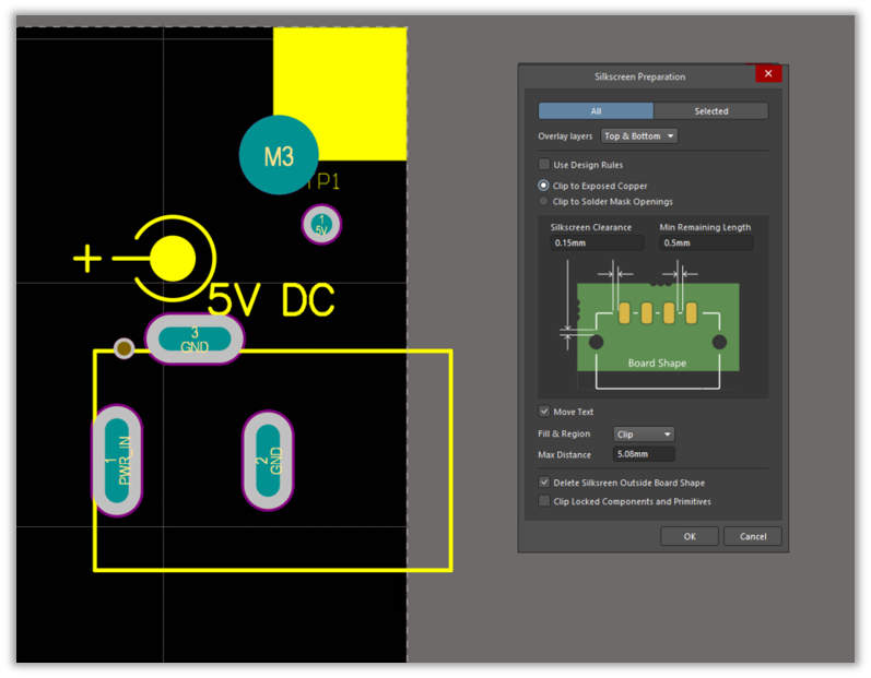 Move Text:在有文本字符串情況下,進行勾選。可以將絲印文本字符串從銅層/阻焊層重疊移開。移動受【Max Distance】值的約束。