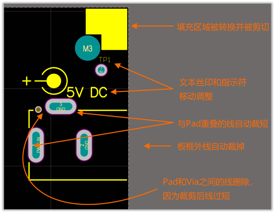 第六欄:【Delete Silksreen Outside Board Shape】選項即為是否需要自動移除板框外部的絲印。
