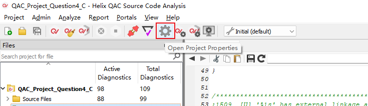 1)、在QAC中打開(kāi)工程的屬性窗口。(如圖4-1)
