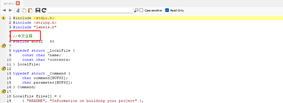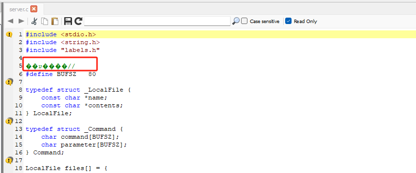 客戶通過同步設(shè)置將工程的代碼導(dǎo)入到QAC中進(jìn)行分析。但是,在閱讀代碼的時(shí)候發(fā)現(xiàn),所有的中文注釋均出現(xiàn)亂碼的情況(如圖2-1)。經(jīng)過和客戶的確認(rèn),客戶使用的編碼規(guī)則是ANSI。而QAC默認(rèn)使用的是UTF-8編碼規(guī)則,所以導(dǎo)致了亂碼。