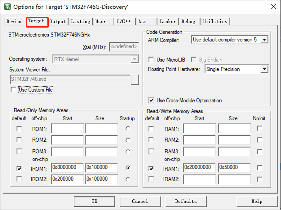 2、在“Options for Target”界面中選擇“Target”標簽。