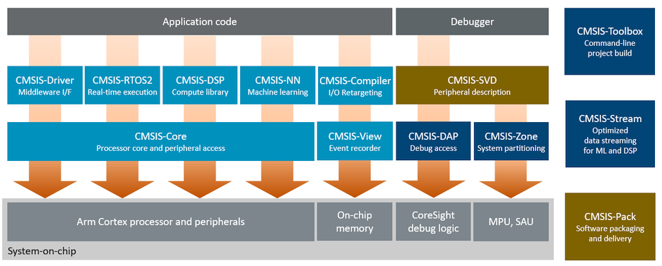 使用基于 CMSIS 的組件為軟件開發工作流程提供有用的實用程序。