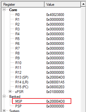 3)、然后,確認Banked中MSP指針的值。(如圖4-3)