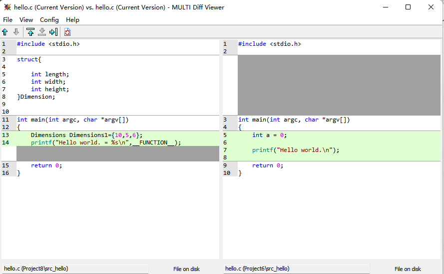 3)、然后,在MULTI Diff Viewer窗口中,就可以看到對于不同的內容的對比和標識。(如圖4-3)