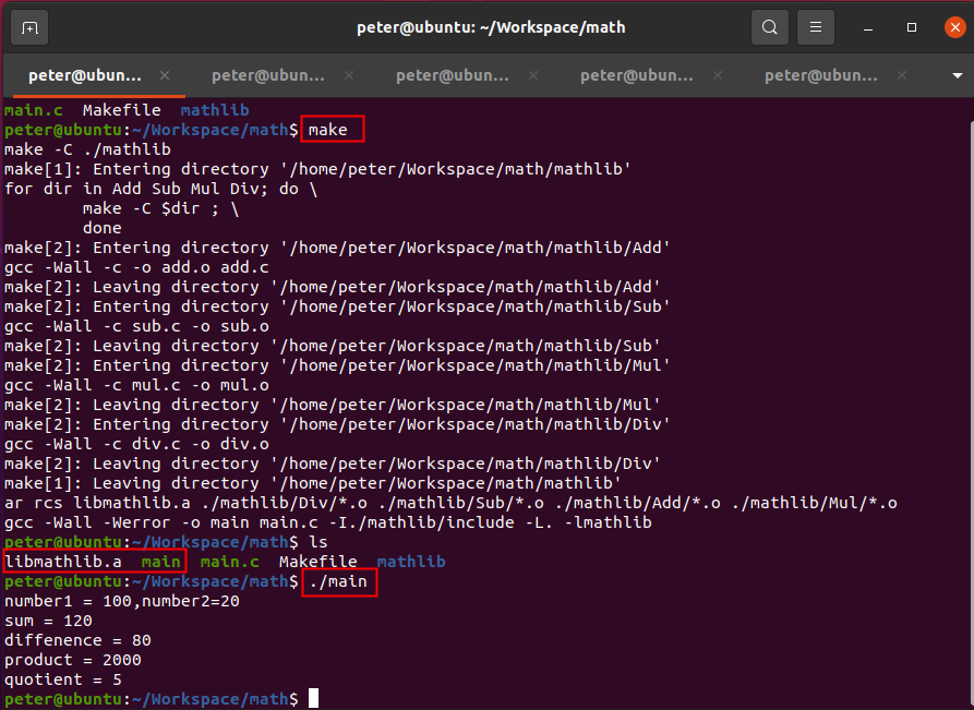 4、通過在主目錄下運行“make”與“make clean”驗證Makefile的嵌套調用