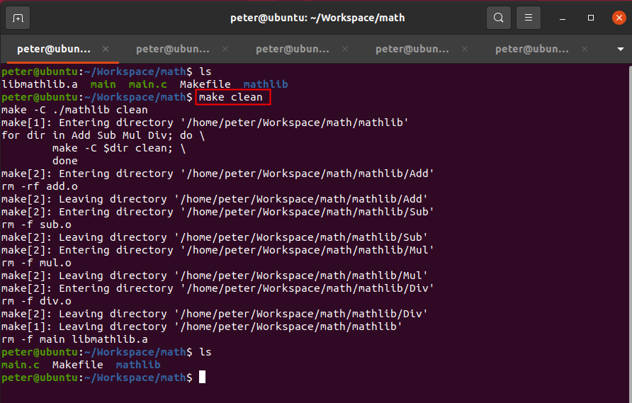 2)、在“math”目錄下,運行"make clean",然后查看目錄下的文件,如圖4-2所示:
