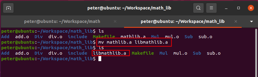 2)、找到靜態庫文件所在的目錄,把靜態庫文件名稱修改為“libmathlib.a”,如圖4-2所示:
