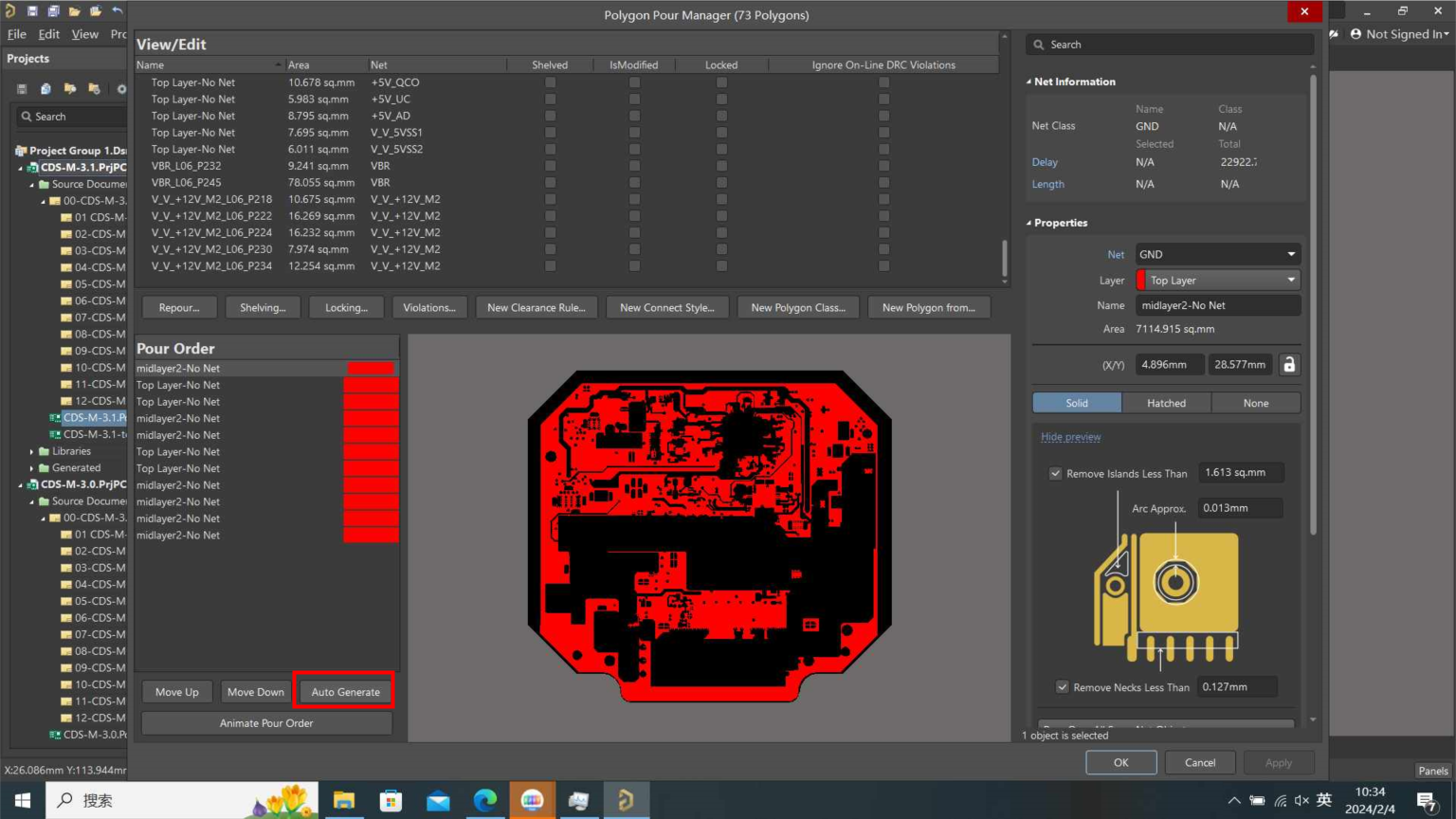 由于同一層敷銅較多,調(diào)整敷銅的最佳順序,因?yàn)樗梢源_保小塊敷銅形狀不會(huì)被較大敷銅阻止?jié)沧ⅰ?/p>
