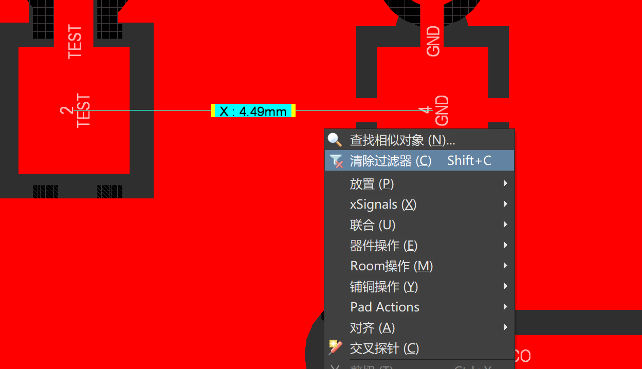 4)、要清除由于測(cè)量產(chǎn)生的標(biāo)記,只需要按鼠標(biāo)右鍵(快捷鍵Shift+C),執(zhí)行“清除過濾器”即可。