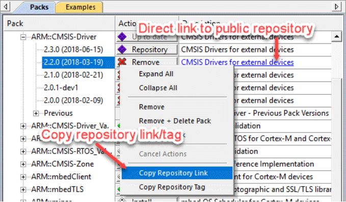 μVision 在本地存儲庫和已安裝的包之間沒有區(qū)別。如果包的版本作為已安裝包和本地存儲庫提供,則僅使用本地存儲庫中的內(nèi)容。