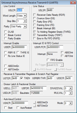 通過菜單?Peripherals提供的UART或Serial對話框顯示微控制器的串行接口狀態。這些對話框允許查看系統的通信波特率和其他參數。