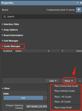 在Guide Manager選項組中單擊Place下拉列表,根據(jù)需要放置參考線。