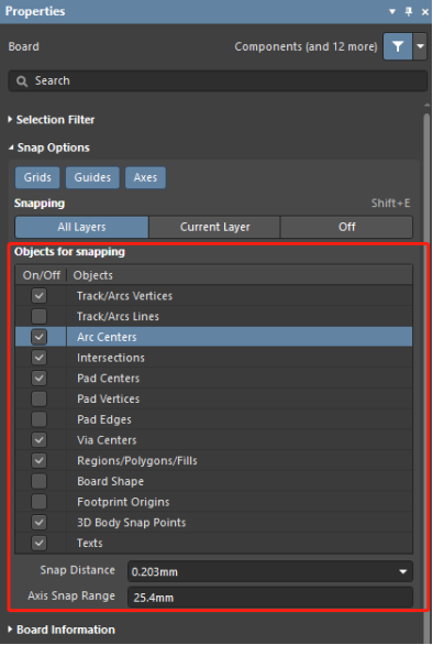 在PCB設(shè)計時精度要求較高,需要使用不同的捕捉對象和不同的捕捉距離,在Altium Designer中提供了多種的光標(biāo)捕捉。
