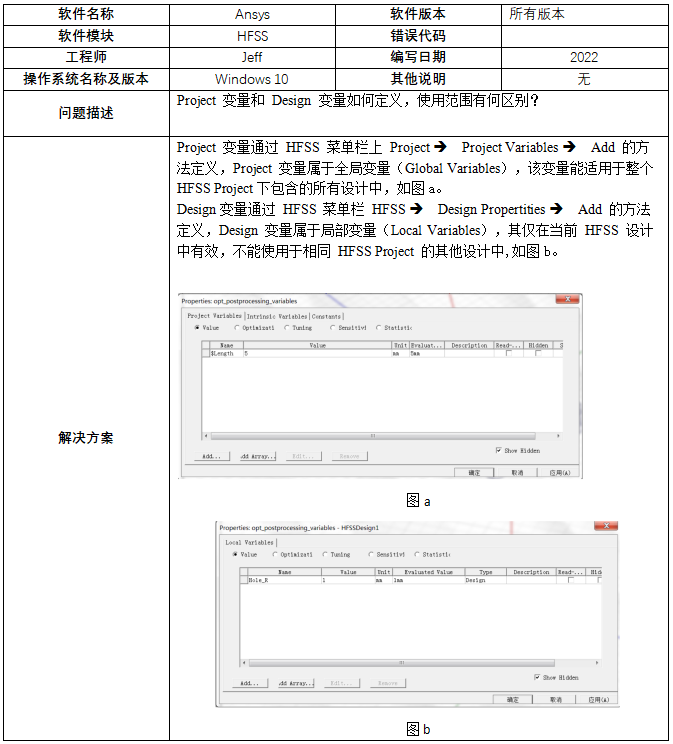 【ANSYS】Project 變量和 Design 變量如何定義,使用范圍有何區別?-2022