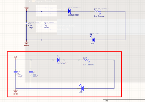 通過【放置片段摘錄】指令,就可以將這部分電路直接調用到原理圖上。