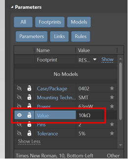 進行條件篩選后,選中所有需要修改的電阻,匹配出來的相似對象會以高亮形式顯示。在全選狀態(tài)下打開屬性對話框,把阻值改成10K,所有選中的電阻阻值都更改為10K。