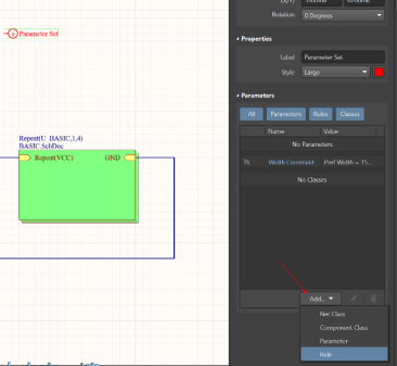 3. 選中“Parameter Set”符號,打開屬性對話框,點擊Add添加規(guī)則,打開規(guī)則設置
