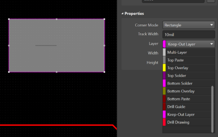 自AD18開始,PCB中Keep-Out的放置對比之前的版本有了較大的改動,以前的版本Keep-Out是可以在Keep-Out層直接放置的,并且在屬性中,可以將任何層的布線改為Keep-Out層。從AD18開始,Keep-Out被當做不同于其他布線的一個元素存在,無法再將其他層的布線改為Keep-Out。Keep-Out可以被放置到不同的層,或者Keep-Out層。放置在任何層的Keep-Out僅對該層有效,而放置在Keep-Out層的線,對所有層都有效。