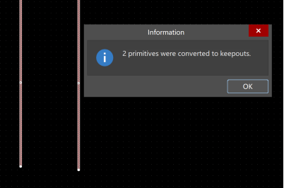 2. 另一種方法可以將電氣層的線轉換為Keep-out。選中電器層需要轉換的線,執行菜單欄“Tools”——“Convert”——“Convert Selected Primitives to Keepouts”,即可將選中的線裝換為帶有Keep-Out屬性的線。