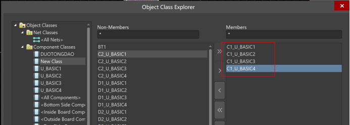 新建一個Class,并將需要歸為一類的元器件,從Non-Member列表中移動到Members列表,即可完成這一歸類。