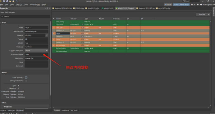 搜PCB界面按快捷鍵:D+K,進入層疊管理器,選擇Pullback distance修改內(nèi)縮數(shù)據(jù),負(fù)片地內(nèi)縮20mil,負(fù)片電源內(nèi)縮60mil。
