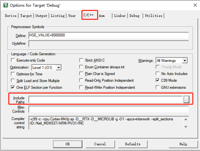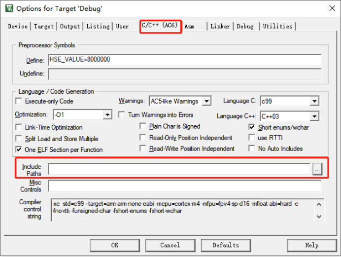 在彈出的對話框內選擇C/C++(AC6) 標簽,或C/C++標簽。