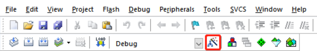 首先點擊菜單欄中Options for Target‘Debug’...圖標。