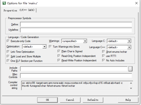 在C/C++(AC6)標(biāo)簽下可以看到此文件的編譯選項。