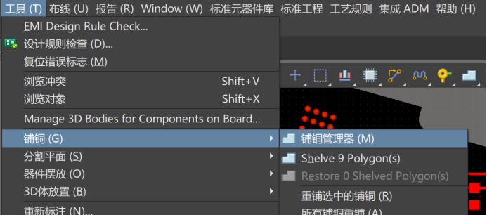 在AD中機型大面積鋪銅時,常規的操作是用鋪銅命令沿著板框繪制一個閉合的區域,然后完成鋪銅操作。但是遇到不規則的板框,這種沿板框繪制鋪銅區域的方法就不是很方便。這時可以使用鋪銅管理器來實現快速的整板鋪銅。