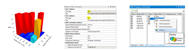 2. 添加了對 rst-rst 結(jié)果文件比較的支持,無需模型旋轉(zhuǎn)。啟用此選項是為了在引入設(shè)計更改(例如,材料、網(wǎng)格、接觸假設(shè)等)時識別計算模型中的模態(tài)變化,但不能識別全局定位方面的變化。MAC 計算器的其余功能繼續(xù)適用。