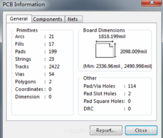 在PCB的頁面下,頂部在reports里面有個BOARD INFOMATION可以看出如圖: