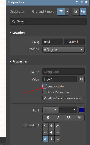 2. 調(diào)整Comment和Designator的位置,然后分別選中它們,在各自的屬性中把Autoposition的打勾去掉。
