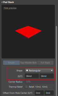 2.放置一個焊盤,在面板中修改屬性(命名、層、位置、形狀,大小等)。