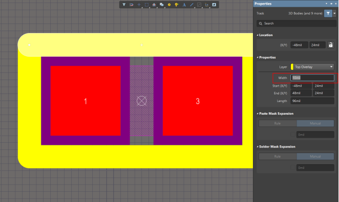 4.兩個焊盤重疊后,在屬性面板上修改位置信息。