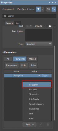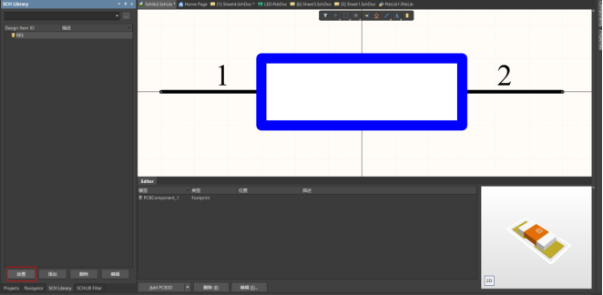 7.在該原理圖符號庫中,找到屬性面板中添加PCD封裝模型。