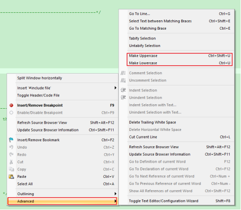 在文件中選中想要變成大寫或小寫的文本,然后單擊右鍵選擇advance->Make Uppercase/Make Lowercase,就可以將選中的文本變成大寫或者小寫。也可以直接通過快捷鍵Ctrl+Shift+U變成大寫,Ctrl+U變成小寫。