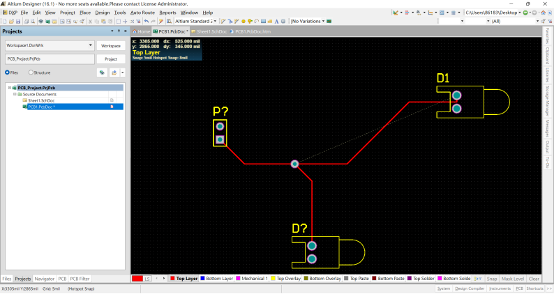 導入原理圖后,線路連接,在結點中放置一個焊盤。