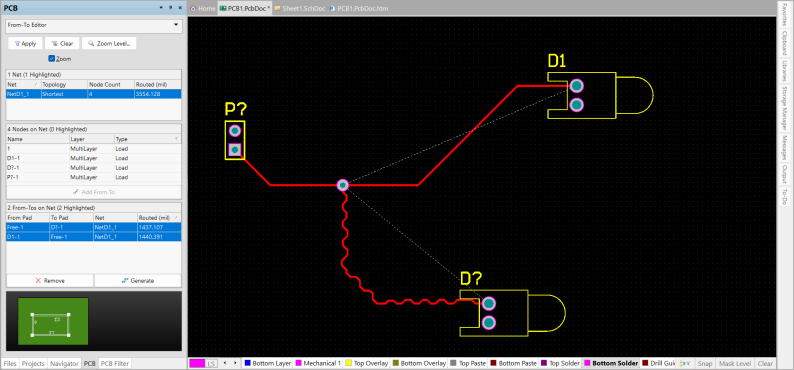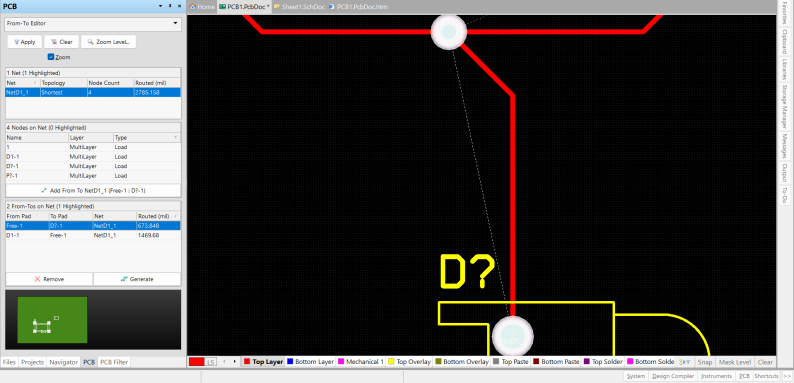 進入到PCB面板中,下拉框進入“From-To-Editor”模式,可以看到有四處節點。