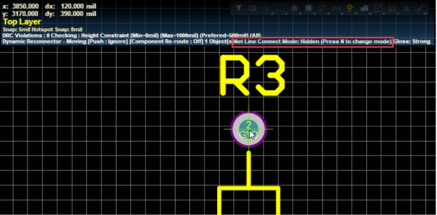 拖動元件時,按“N”可以切換飛線的連接狀態,分別為: