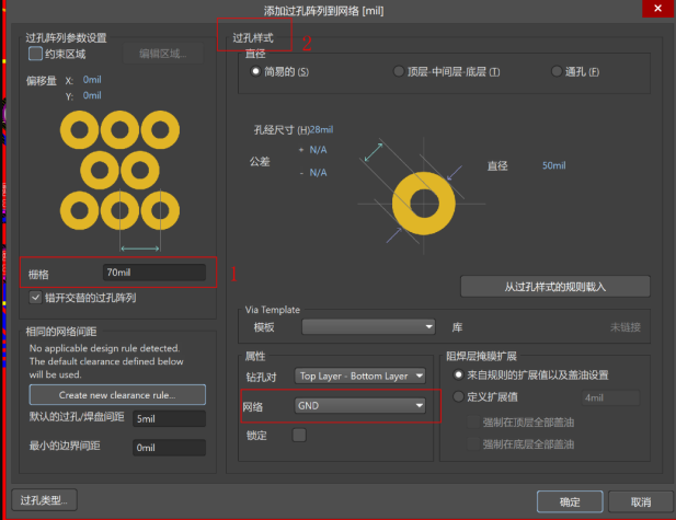 設置完參數之后,點擊“確定”,即可添加地過孔。