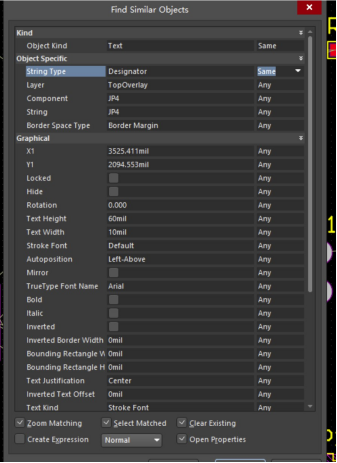 將Designator(位號)設(shè)置修改為Same,點(diǎn)擊OK,開始查找。