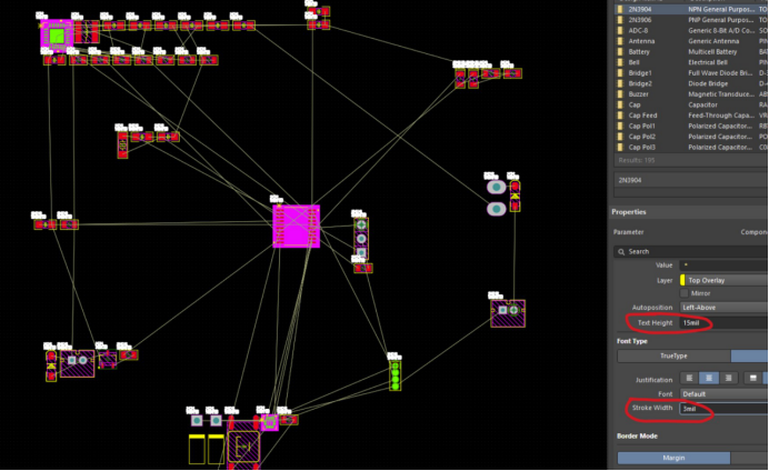 這樣設(shè)置完成后,再進(jìn)行布局布線就十分方便了。布局布線結(jié)束后,可以按照同樣的設(shè)置,再將絲印設(shè)置為合適的大小以及位置。