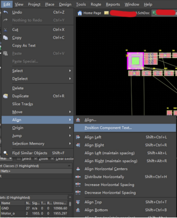 依次點(diǎn)擊Edit→Align→Position Component Text,或按快捷鍵A+P,選擇定位元件文本。