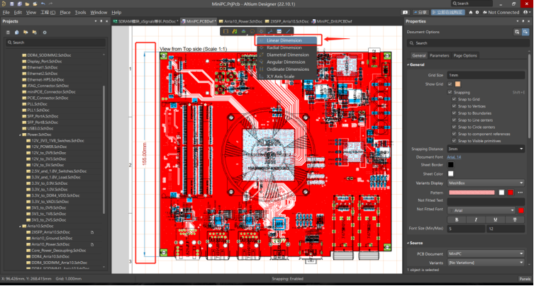在工具欄下Linear Dimension給板信息添加線性尺寸。
