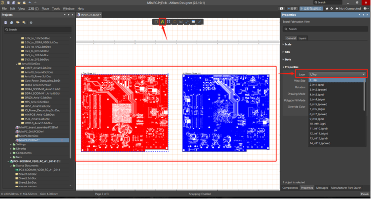 放置板制造圖后,雙擊打開屬性面板,在“Layer”下選擇板層。