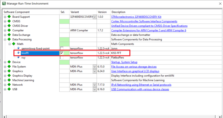 2.勾選kissfft,單擊OK按鈕退出對(duì)話框。