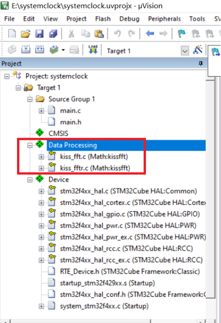 3.軟件已經(jīng)將kissfft庫(kù)添加到項(xiàng)目種,Build一下,需要調(diào)用時(shí),只需要添加頭文件#include “kiss_fft.h”即可。