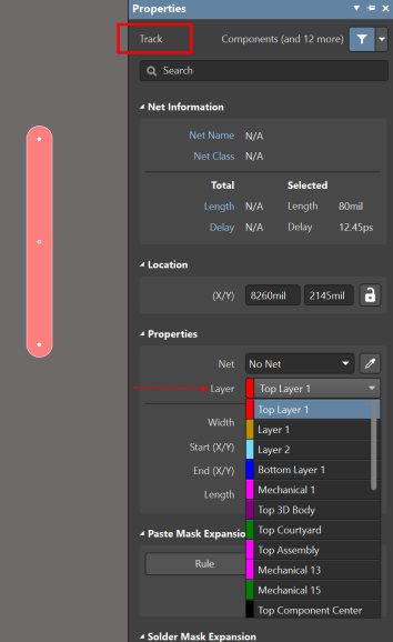屬性為Track的線在層切換的下拉框中無法看到Keepout層