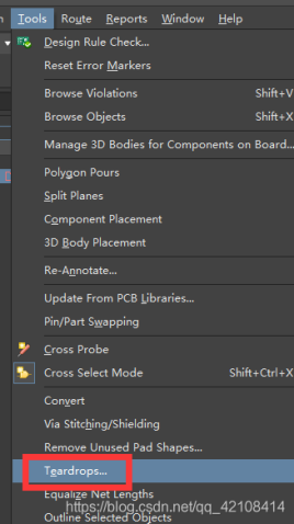 在菜單欄Tools->Teardrops(快捷鍵TE)